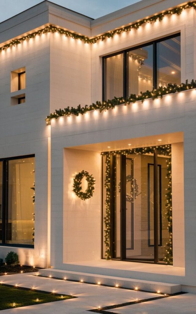 Quando passamos em frente a uma casa toda decorada para o Natal, é quase impossível não olhar, a fachada é cartão de boas- vindas da casa. Dê preferência a luzes LED resistentes ao clima para árvores, arbustos, janelas e caminhos.